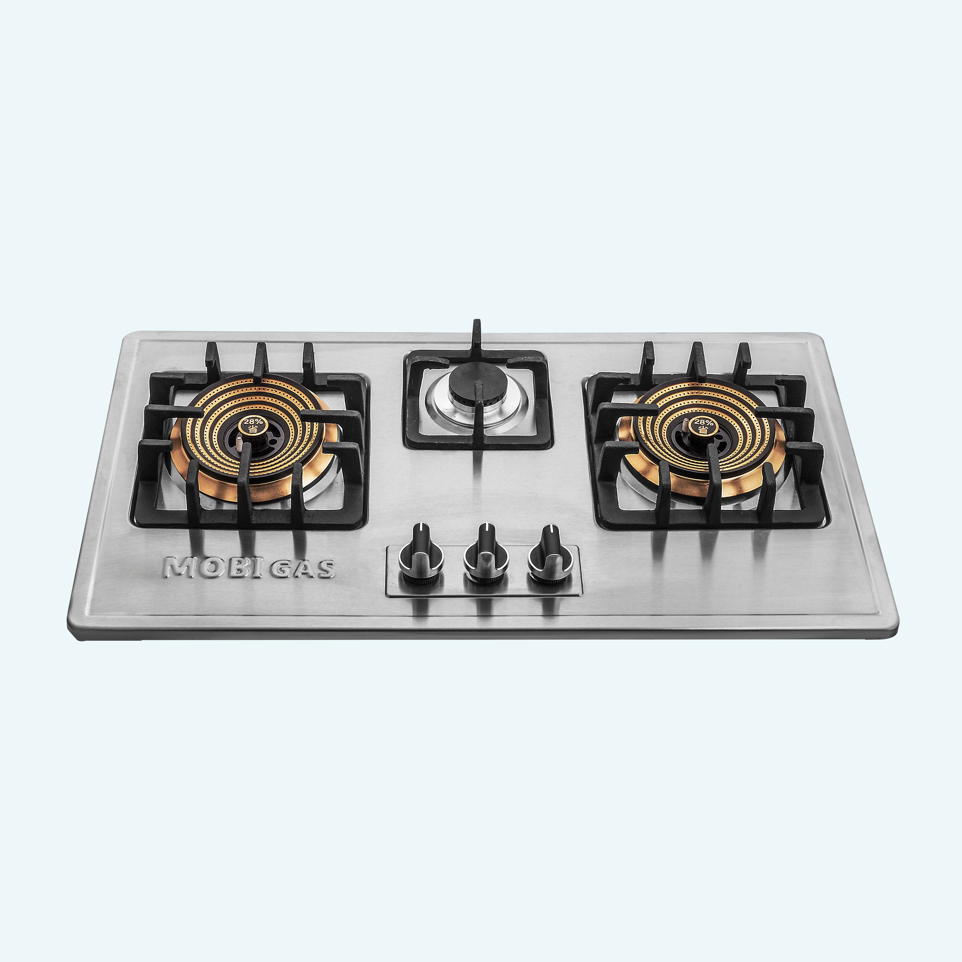 MOBI GAS MM-294 – Premium 3 Burner Built-In Hob Stove (Auto Ignition, Brass Burners, Heavy Stainless Steel)
