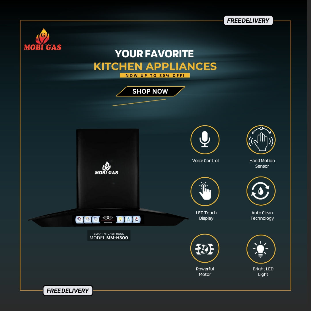 Experience a new level of convenience with our 100% Imported Smart Kitchen Hood, designed for modern Pakistani kitchens. Equipped with Hello Chimney Voice Control, Hand Motion Sensor, and an advanced LED Touch Display, this hood makes cooking cleaner, easier, and smarter.